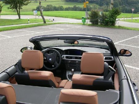 Ein ganz neues BMW 335Ci Cabriolet. Schon im Stand zeigt es, dass hier ein kleines Biest steht. Nur der Kenner erkennt den 3.0 Liter Bi-Turbo Motor mit 306PS an den zwei Auspuffrohren. Dank Hardtop, ist das Cabriolet bei geschlossenem Dachkaum vom Coupé zu unterscheiden.